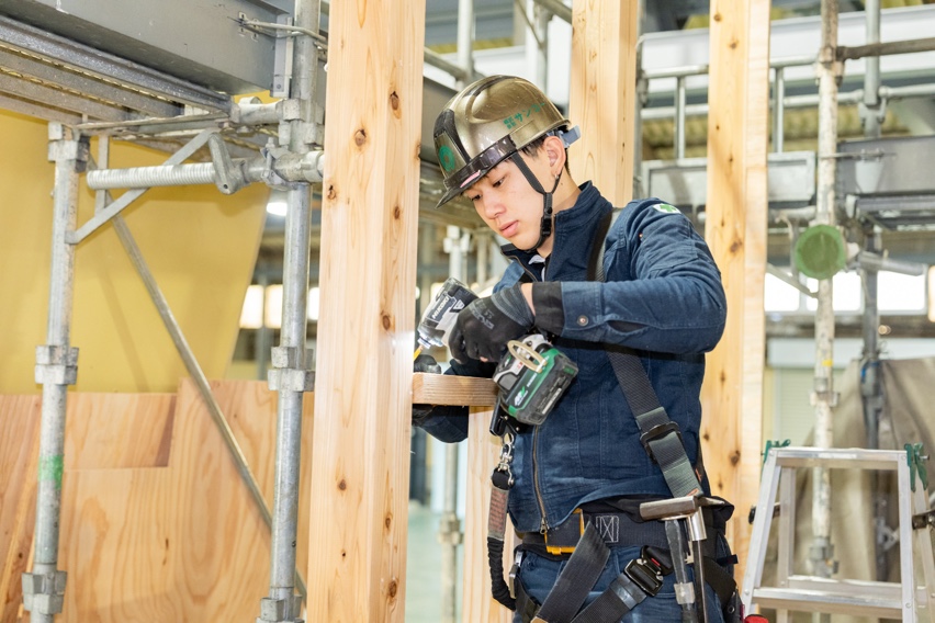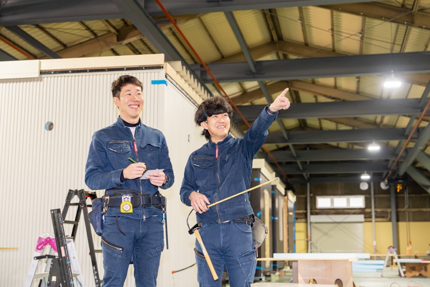 日進工場は、東名高速名古屋インターから車で約 10 分と遠隔地移動にも便利な場所に位置し、敷 地 1650 坪、工場内も 600 坪と十分なスペースで当社の社員大工が責任をもって施工生産いたし ます。