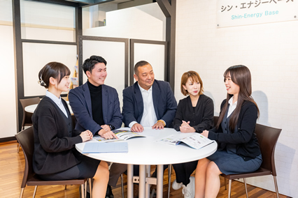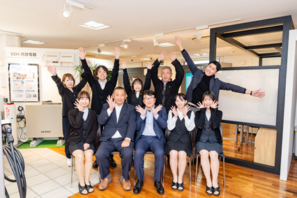 自己紹介はこれくらいで、総合エネルギー事業本部の紹介をさせて頂きます。当本部は、太陽光発電や蓄電池等、エネルギー設備の総合窓口として、エネルギーショールーム「エナジーベース」を併設し、住宅や工場、店舗等に対し創エネ・蓄エネで、電気代やCO2の削減に向けて、お客様のエネルギーソリューションに取組んでおります。プランの企画・設計からシミュレーションや各種申請迄を行い、システム設置を一貫した責任施工体制で展開しております。電気は快適な暮らしや、どんな事業にも欠かせないものです。そして、電気は自分でつくって自家消費する時代に入りました。お客様が、電気をより効率よく、賢くつかい、無理なく電気代を削減し、お財布にも優しく結果、環境にも貢献できるエネルギー設備のご提案に努めて行きます