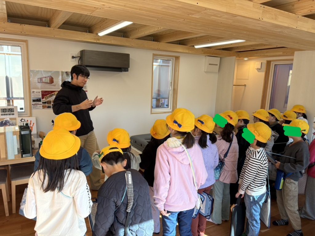 また、断熱材を見学して、「大きい掛け布団みたい!!」とユニークな感想を述べていて、壁の中にいっぱい入っていることをお伝えしたら、見てみたい!と興味深々でした。