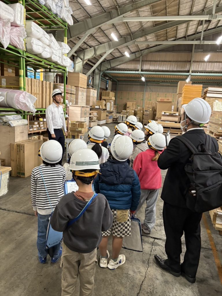 毎年本社の近くの小学校からのご依頼で、生活科「わたしの町 はっけん」の学習の一環として、お店の中や施設を見学したり、そこで働く人々の話を聞くことで自分たちの町に愛着をもって生活できるようにすることを目的に、今年は16名の小学2年生の生徒さんと先生1名が見学に来社されました。