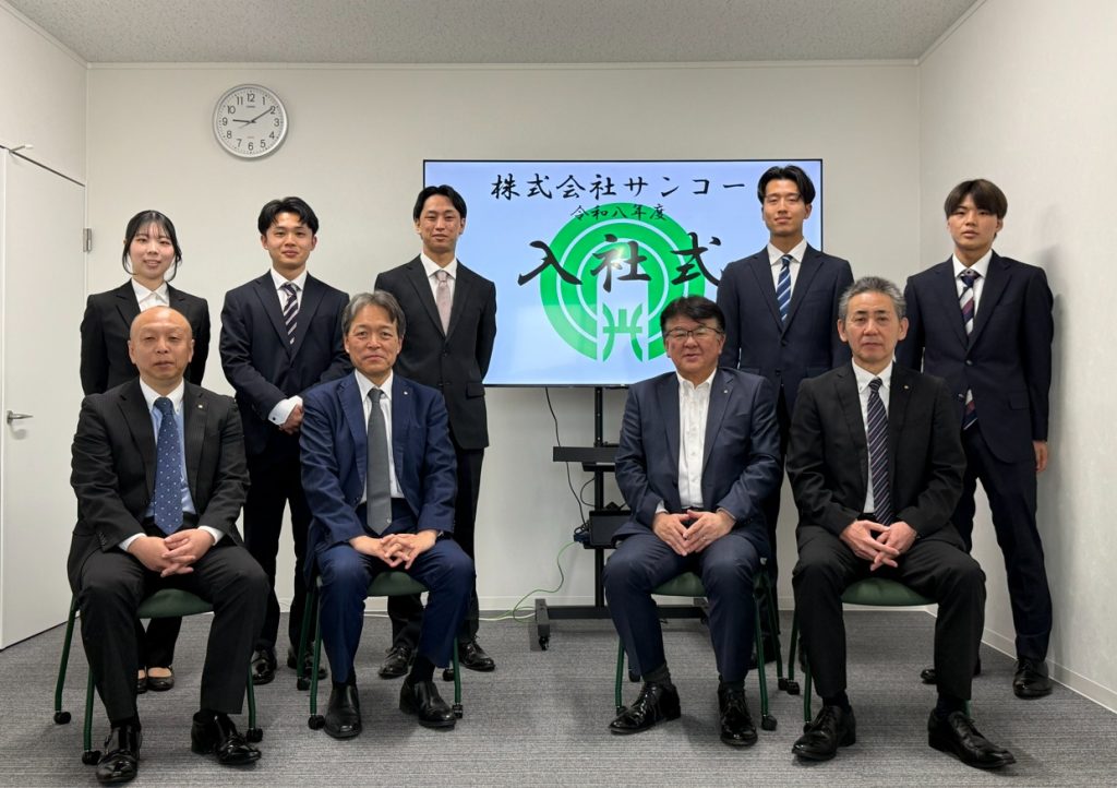 4月1日(水)新卒新入社員5名と中途採用社員8名の合計13名を新たに迎え2026年度 株式会社サンコー入社式を開催しました。