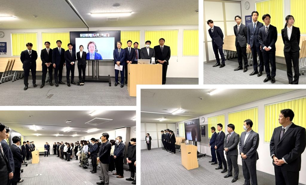 関東支店採用の中途採用4名はリモートでつないでの入社式となりました。