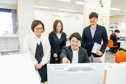 さて岡崎支店ですが住宅街の中に構えており、支店社員が協力しながらそれぞれの役割をこなして、チームワークよく毎日仕事に取り組んでいます。もともと建材中心とサッシ中心のチームを合体してできた組織がこの岡崎支店で、社内でもそういう意味では期待されていると思うので、私含めみんなが良いプレッシャーを感じてやっています。